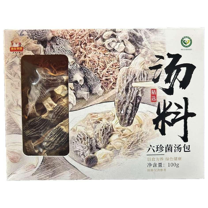 【广西·南宁】寿乡农场六珍菌汤包(鹿茸菇+蛹虫草+香菇+茶树菇+羊肚菌+姬松茸)100g/ 盒