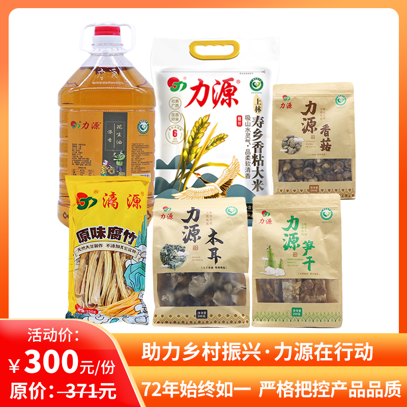 力源粮油300元套餐二(花生油5L+寿乡香粘大米+香菇+笋干+木耳+原味腐竹)